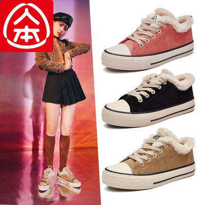 人本品牌正品冬季加绒棉鞋加厚保暖雪地靴帆布鞋百搭小白鞋女棉靴
