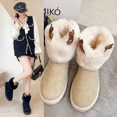 雪地靴女皮毛一体2021年新款秋冬季加绒短筒百搭厚底保暖棉鞋短靴