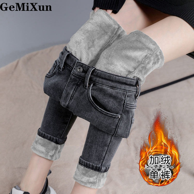 GeMiXun 加绒牛仔裤女高腰显瘦秋冬新款外穿紧身小脚铅笔裤子女潮