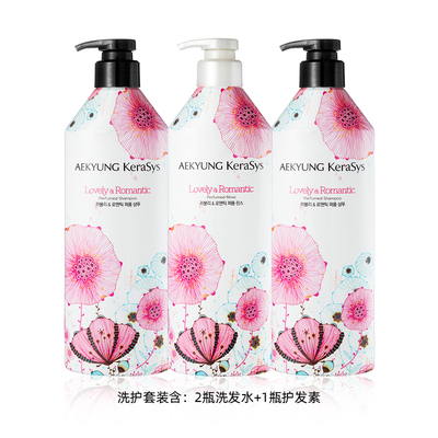 3*600ml粉色韩国爱敬洗护套装男女士控油洗发水2瓶+护发素1瓶旅行