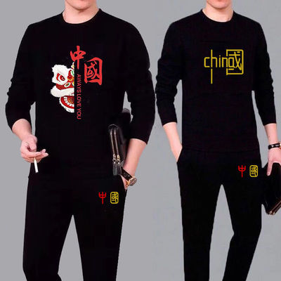休闲运动套装男2021春秋季男生卫衣韩版潮流搭配帅气加绒两件套