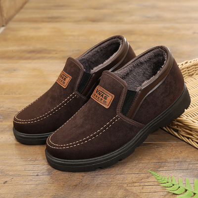 欧伦啄木鸟棉鞋男冬季中老年保暖棉皮鞋男士真皮加绒加厚爸爸棉鞋59.9元天猫189.9元