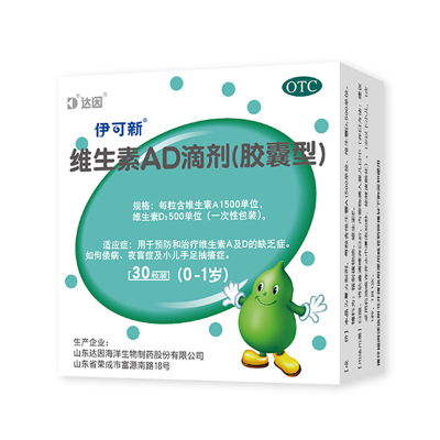 3盒装】伊可新维生素AD滴剂(胶囊型)30粒/盒儿童补钙手足抽搐夜盲
