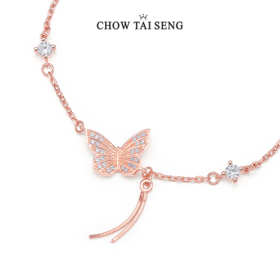 周大生蝴蝶手链女生轻奢蝶舞中国风流苏手饰纯银饰品闺蜜生日礼物