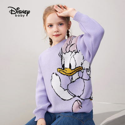 迪士尼女童可爱毛衣圆领套头2021秋冬新款儿童针织卡通打底毛衣